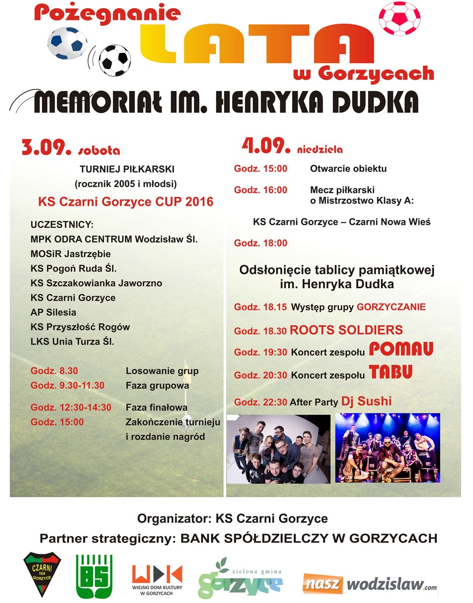 KS Czarni Gorzyce zaprasza 3-4 września do udziału w dwudniowej imprezie na pożegnanie lata. Zagrają zespoły POMAU i TABU!